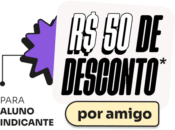 A cada amigo indicado que se matricular na Proz, você recebe R$ 50,00 de desconto na sua mensalidade. Esse desconto é cumulativo, ou seja, quanto mais amigos indicados se matricularem, maior será seu benefício.